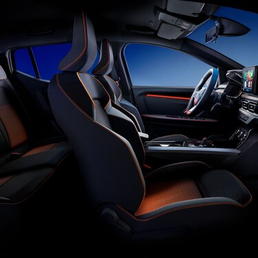 Tapizados ¨Premiere Edition¨ con detalles naranjas y terminaciones de alta calidad, iluminación ambiental variable.