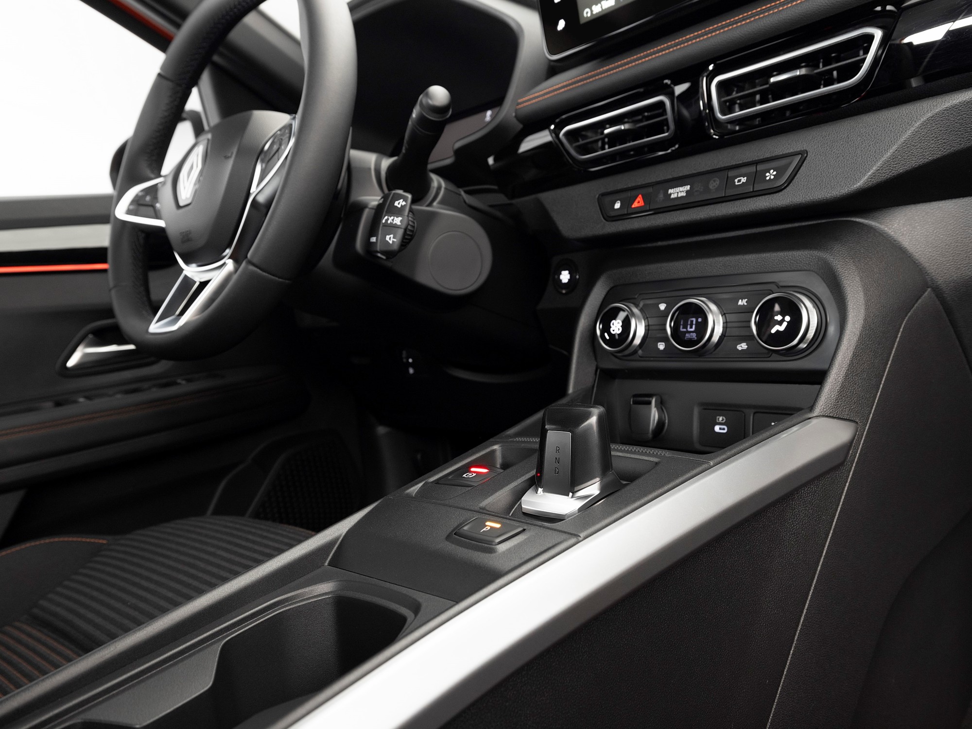 Consola central alta con freno de estacionamiento eléctrico, e-shifter con caja de cambios automática EDC de 6 marchas, panel digital de 7″, pantalla multimedia flotante de 8″, y volante multifunción